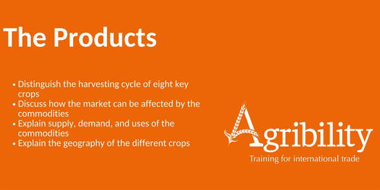 This module will explain the cycle of eight key crops: Barley, Corn, Rice, Wheat, Sorghum, Rye, Soybeans, and Sunflowerseeds. The discussion of each crop will be broken down into plant/harvest period, specifications and uses, production and consumption, and the markets. This will provide you with an overall picture of the cycle, geography, and uses of eight commonly traded commodities.